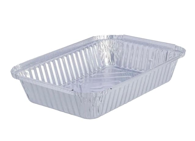Bandeja de aluminio resistente para hornear y almacenar alimentos calientes o fríos.