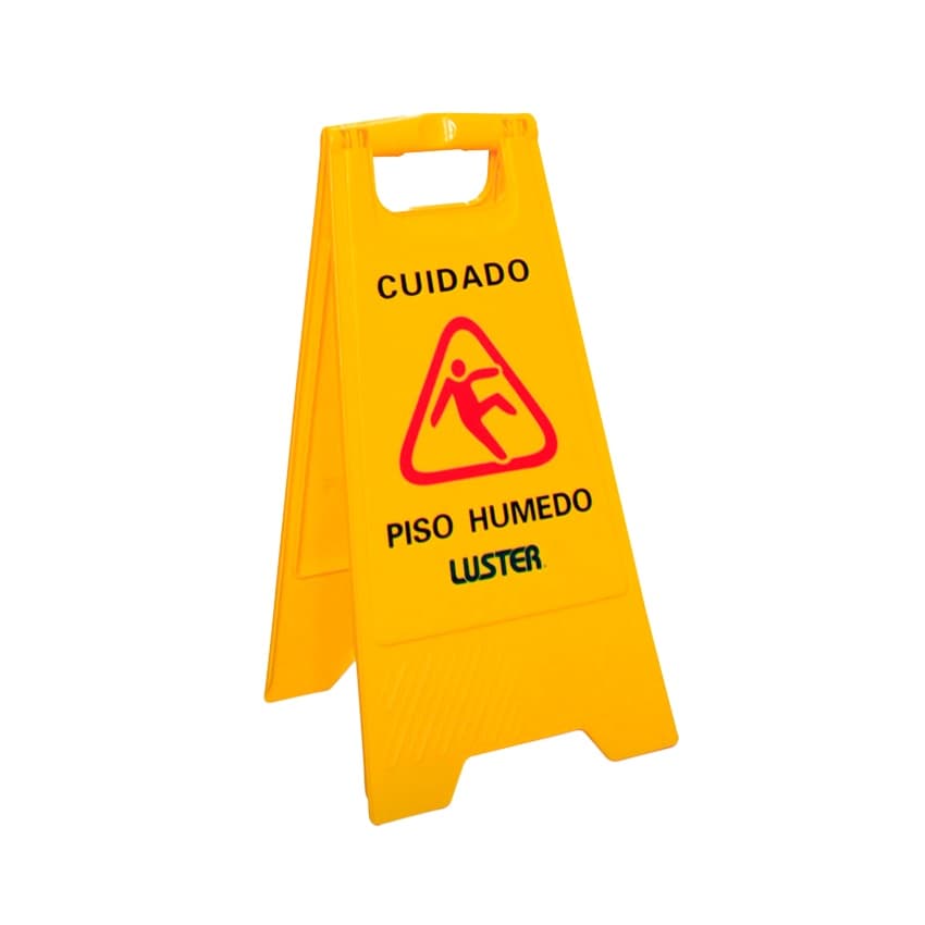 Señalética piso mojado, necesaria como una señal de seguridad.